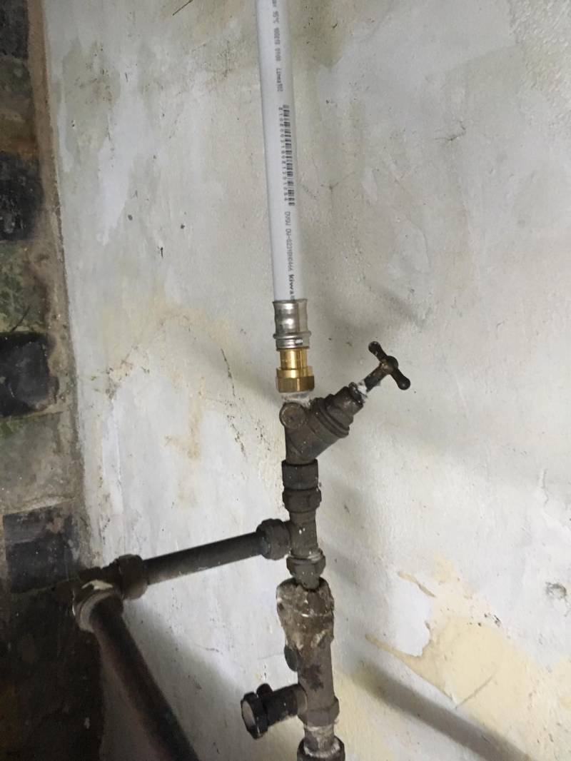 Foto's vooraf: meerdere beschadigingen in de leidingen dienen verholpen te worden.