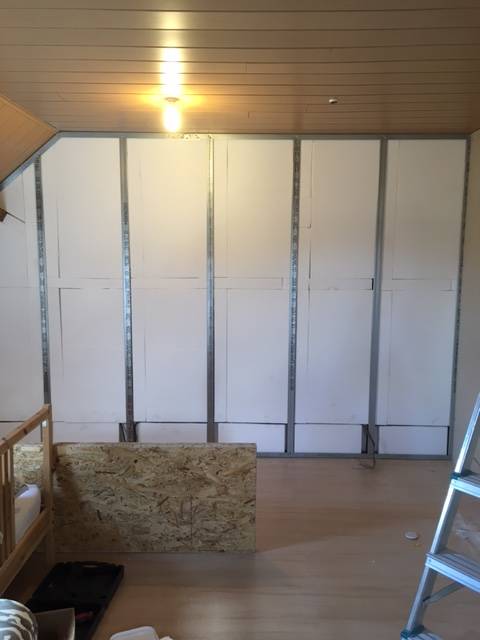 -Gyprocwerken voor het creëren van twee slaapkamers met degelijke isolatie.